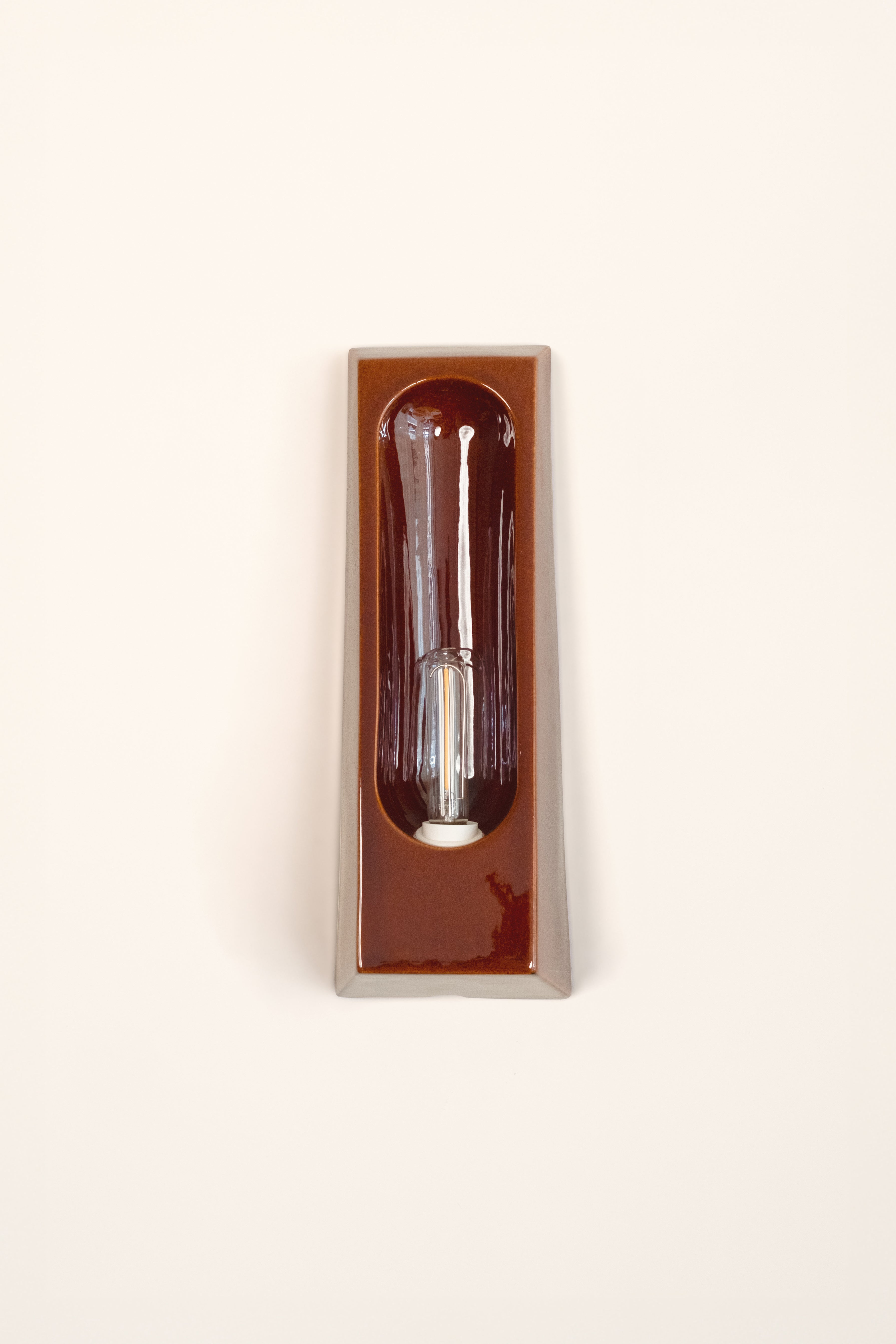 Introducing a simple yet elegant wall sconce designed by French designer Violaine d'Harcourt. Handcrafted in Portugal, this ceramic wall light is inspired by traditional alcoves, often lit at night with candles. The thin 1W tubular bulb fits perfectly into the ceramic frame, creating a warm, inviting light. The Alcove wall light comes in a wide range of different glazes to suit different interiors.