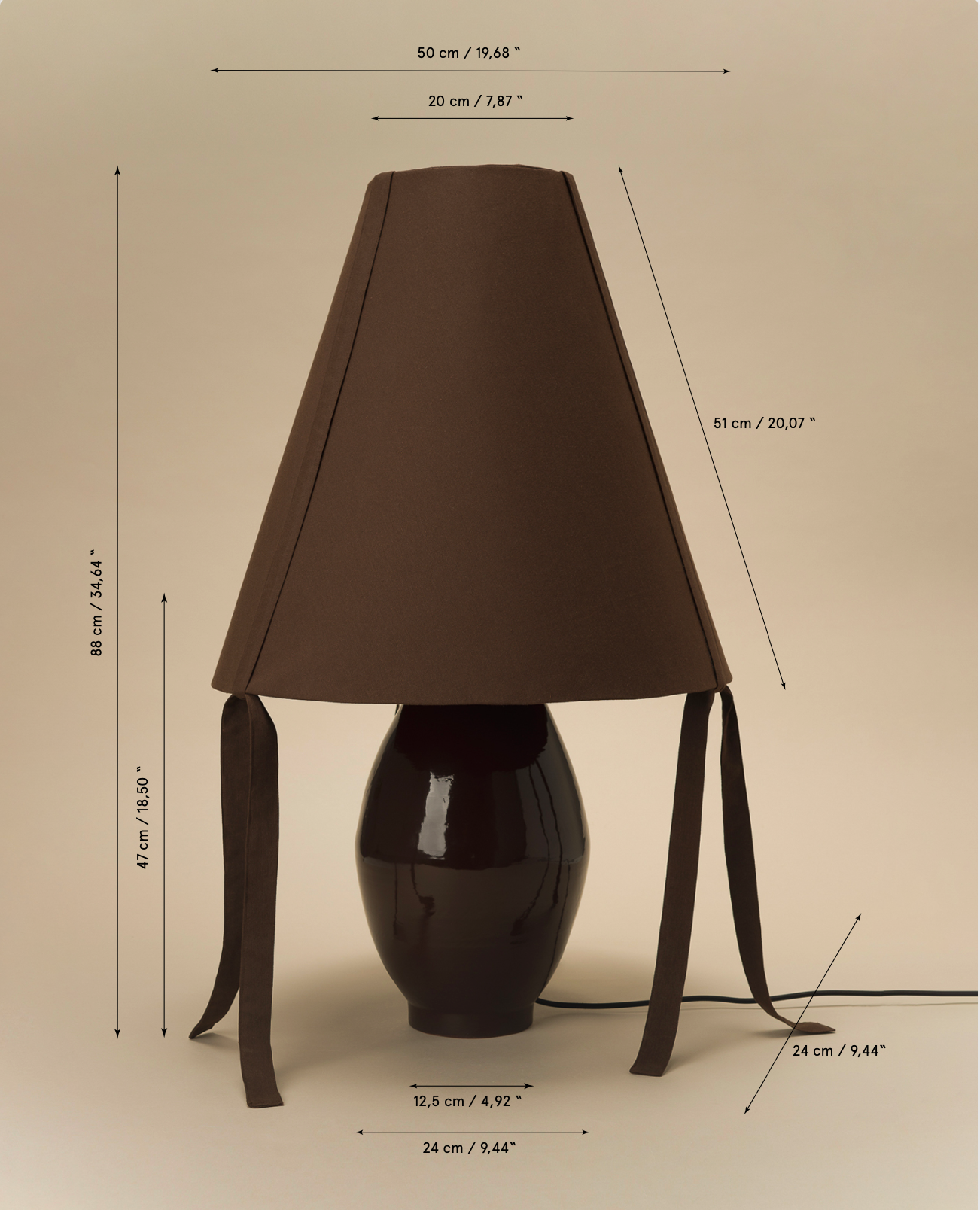 Illuminate your space with the sophisticated ceramic table lamp by Los Objetos Decorativos, designed to bring warmth and elegance to any interior. Its minimalist silhouette, paired with a smooth matte finish in deep brown, creates a timeless aesthetic that complements modern and classic décor alike. The lamp features bow details on the shade, making it a standout piece for a bedroom or living room. Perfect for adding soft ambient lighting, this versatile lamp seamlessly blends functionality with artistic design.