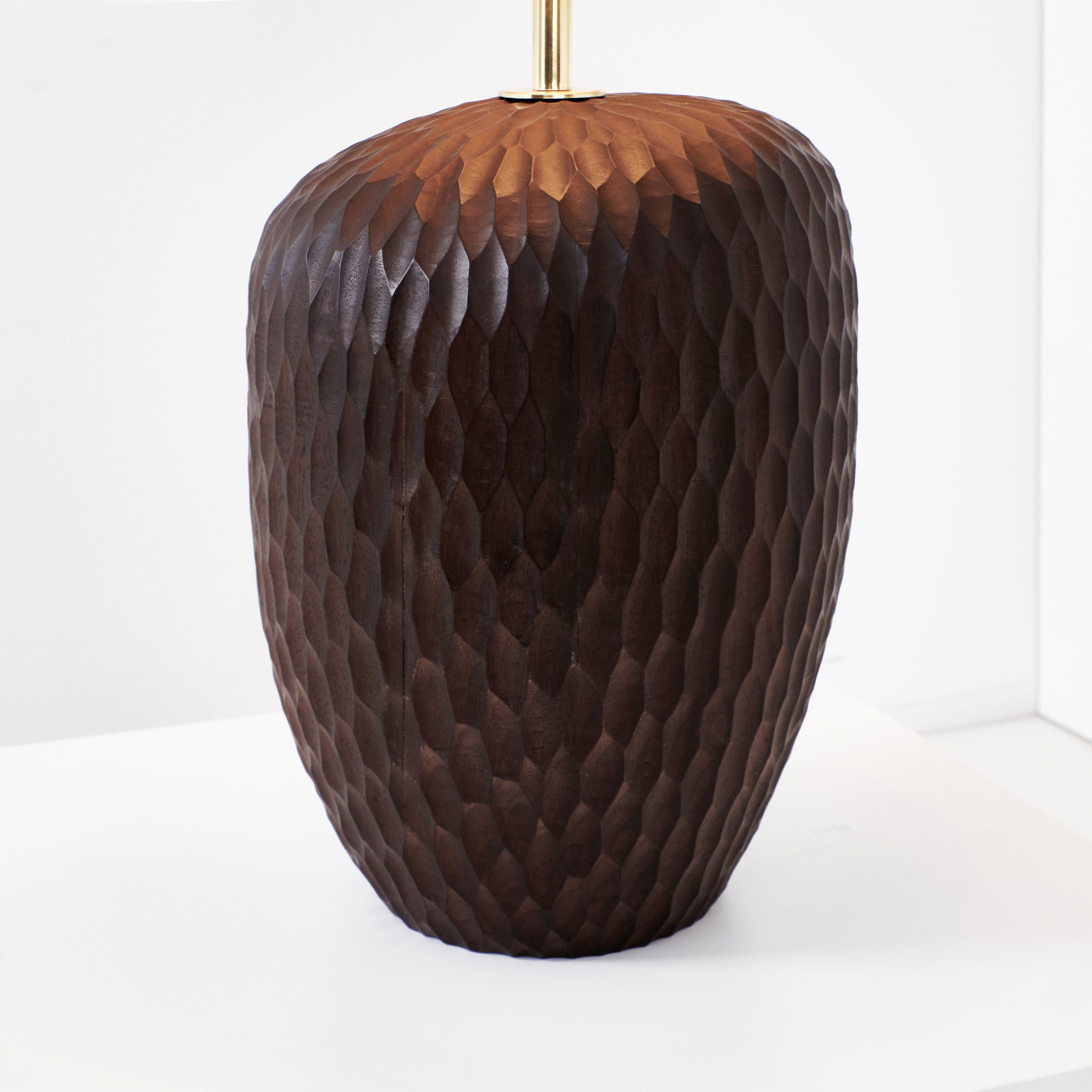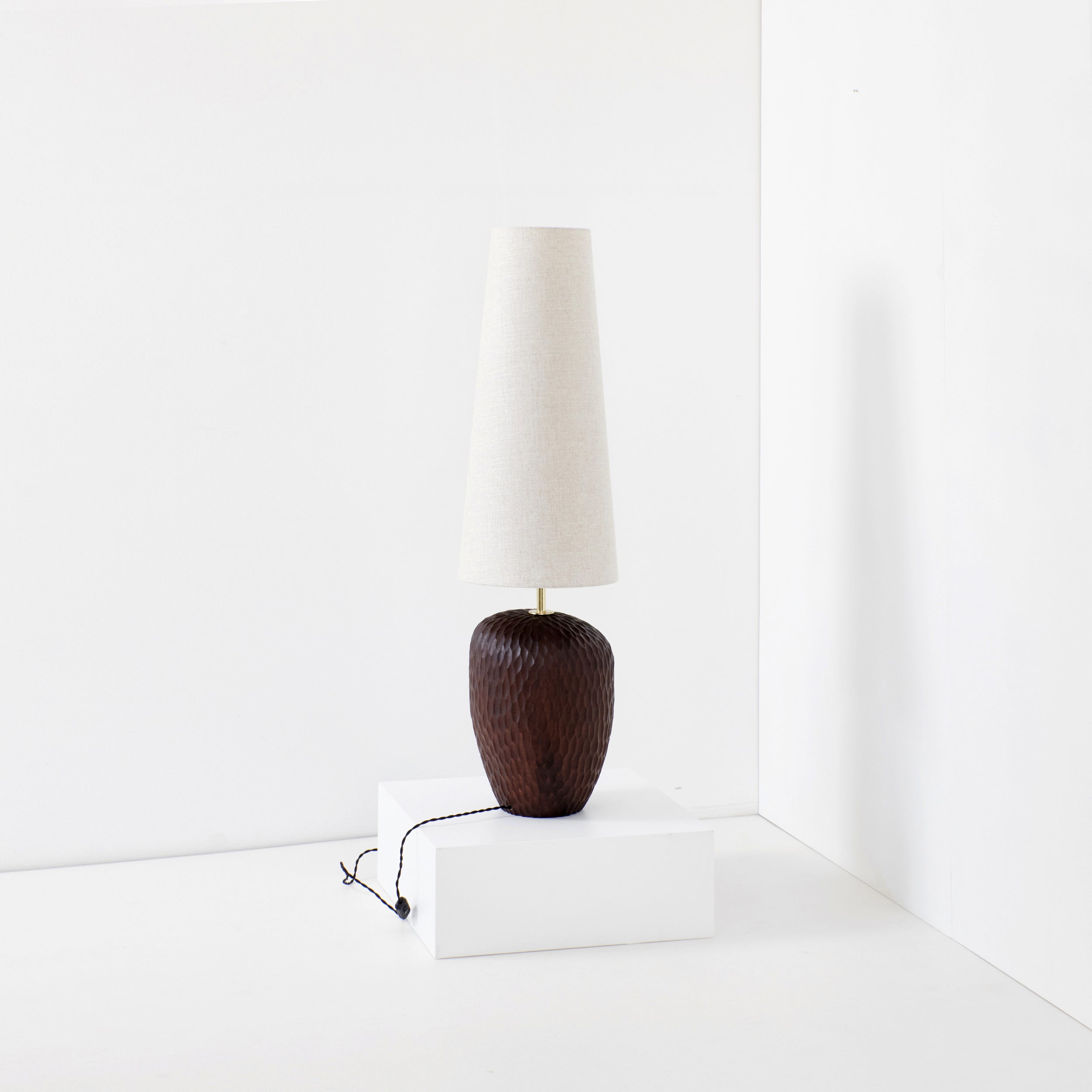 Foz is a large artisanal lamp featuring an organic silhouette, and a base hand-carved from solid wood in Project 213A’s own workshop. Each piece is entirely unique, with natural variations in form and tone that highlight its handcrafted character.