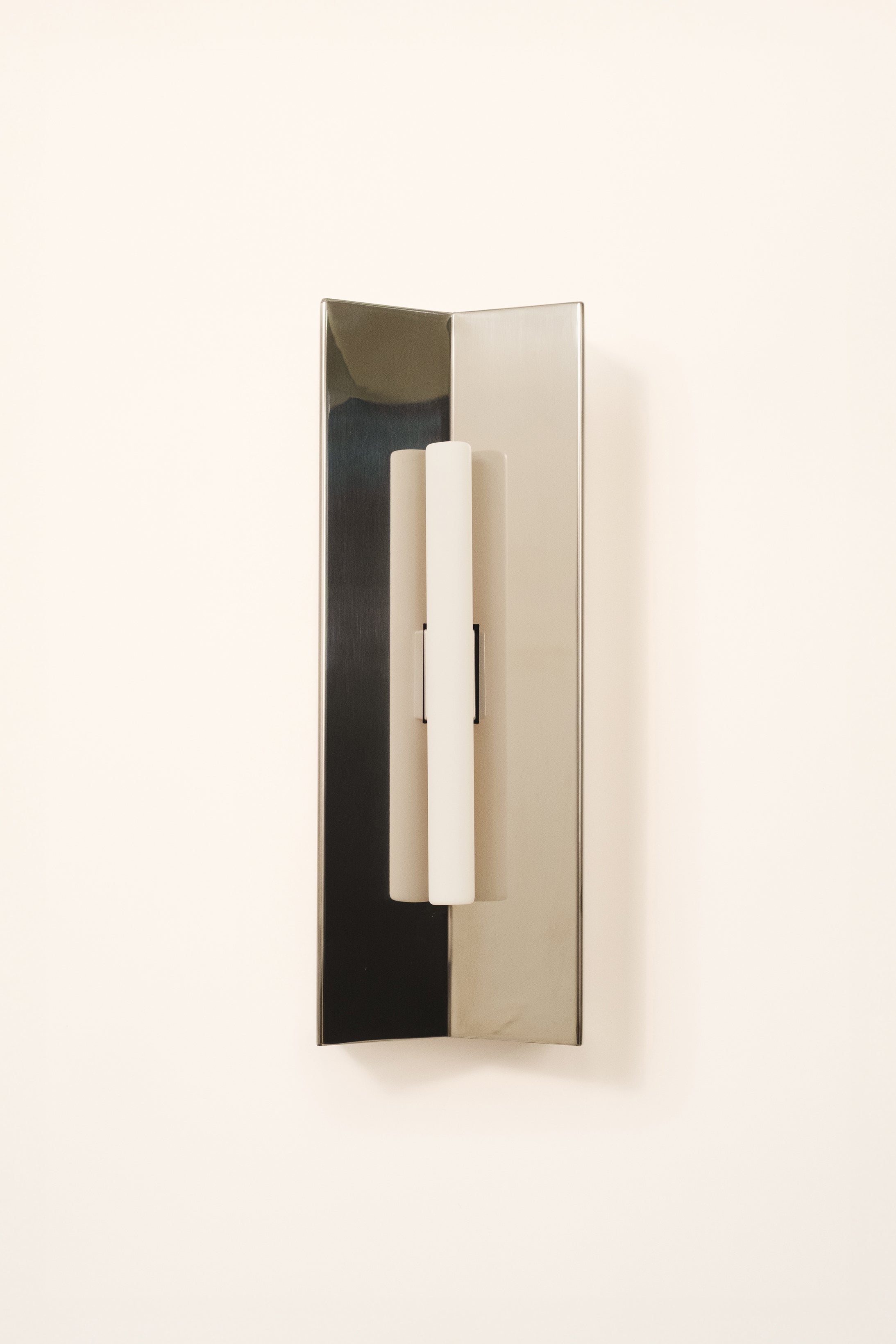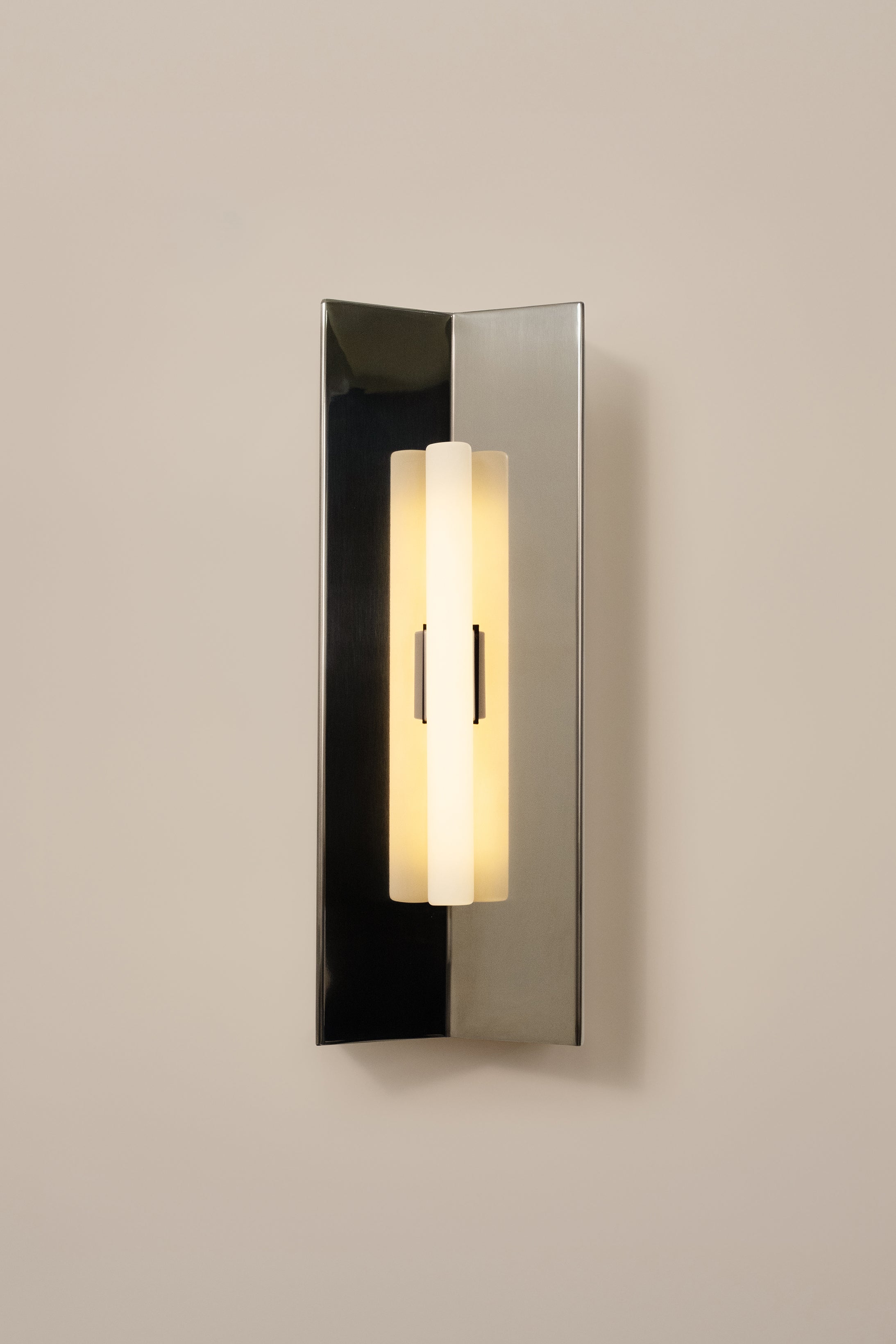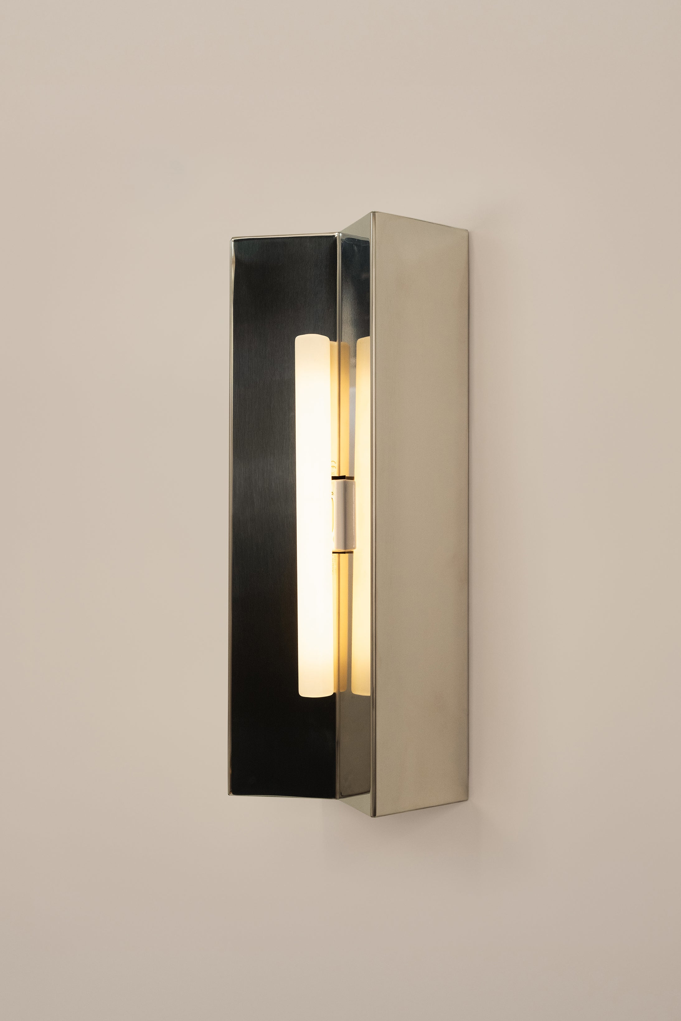 A bold interplay of light and reflection, the Arrow Wall Light by French designer Violaine d’Harcourt transforms any space with its geometric lines. Made from polished stainless steel, its sharp silhouette captures and subtly mirrors its surroundings, creating a dynamic visual effect that evolves throughout the day. Designed for versatility, the Arrow Wall Light is available with or without a handcrafted paper diffuser, meticulously made in d'Harcourt's Lisbon-based atelier. The diffuser softens the light, casting a warm, atmospheric glow, while the bare metal version embraces a more direct, architectural illumination.