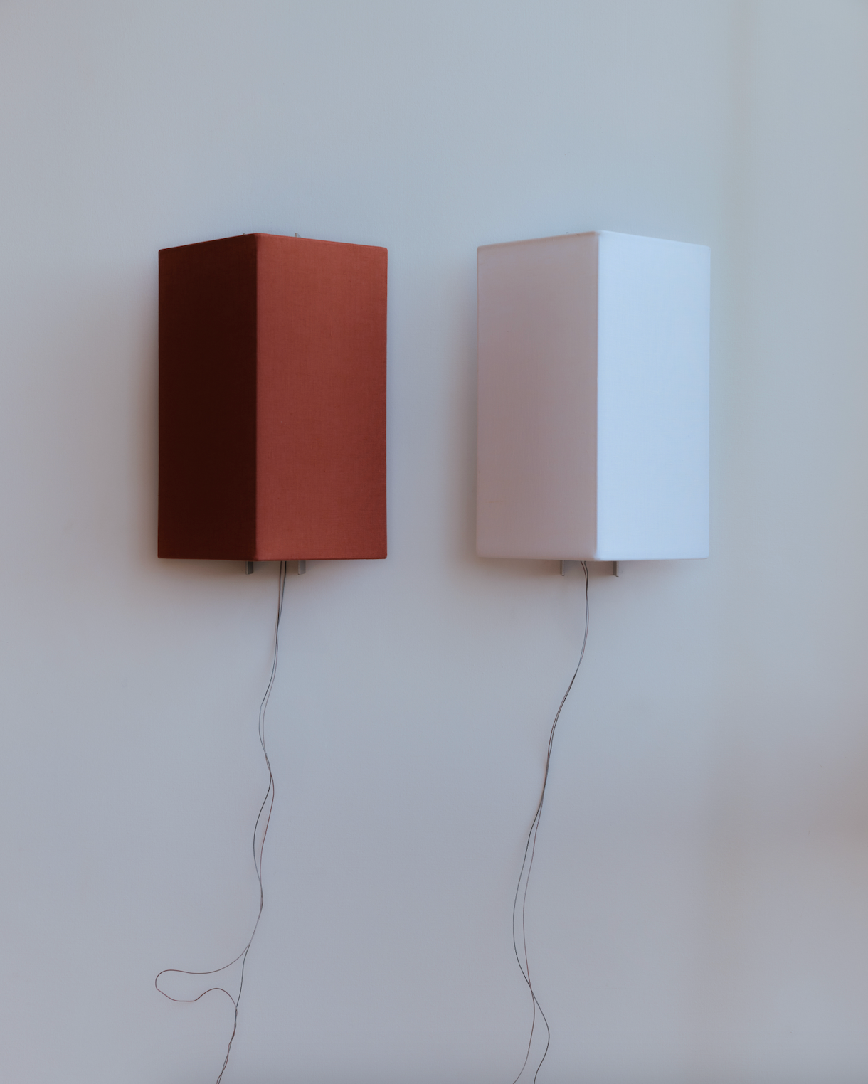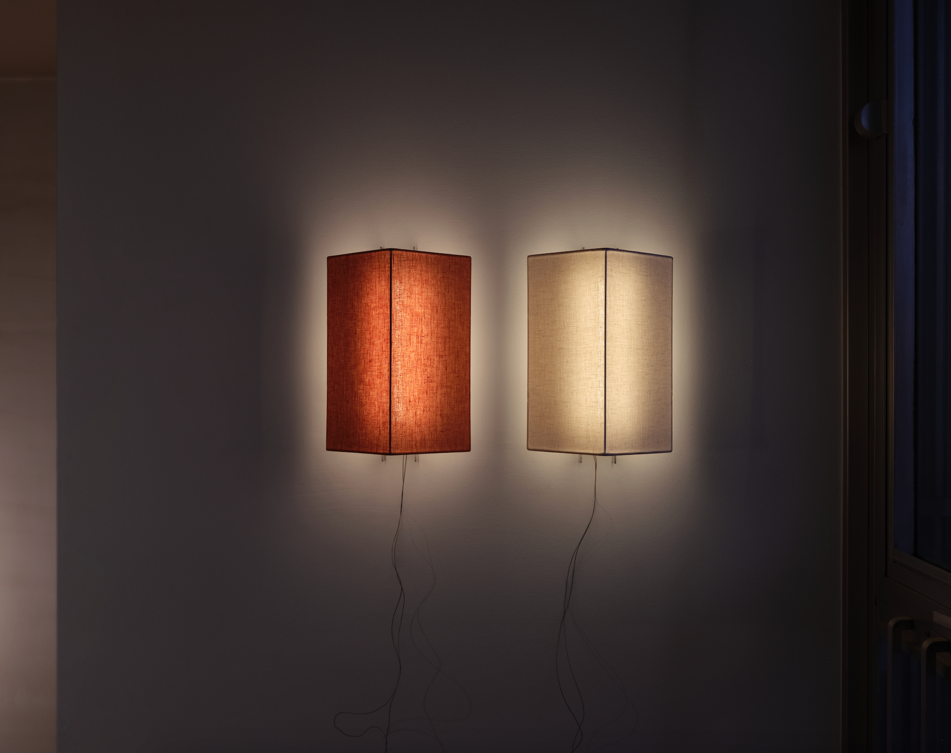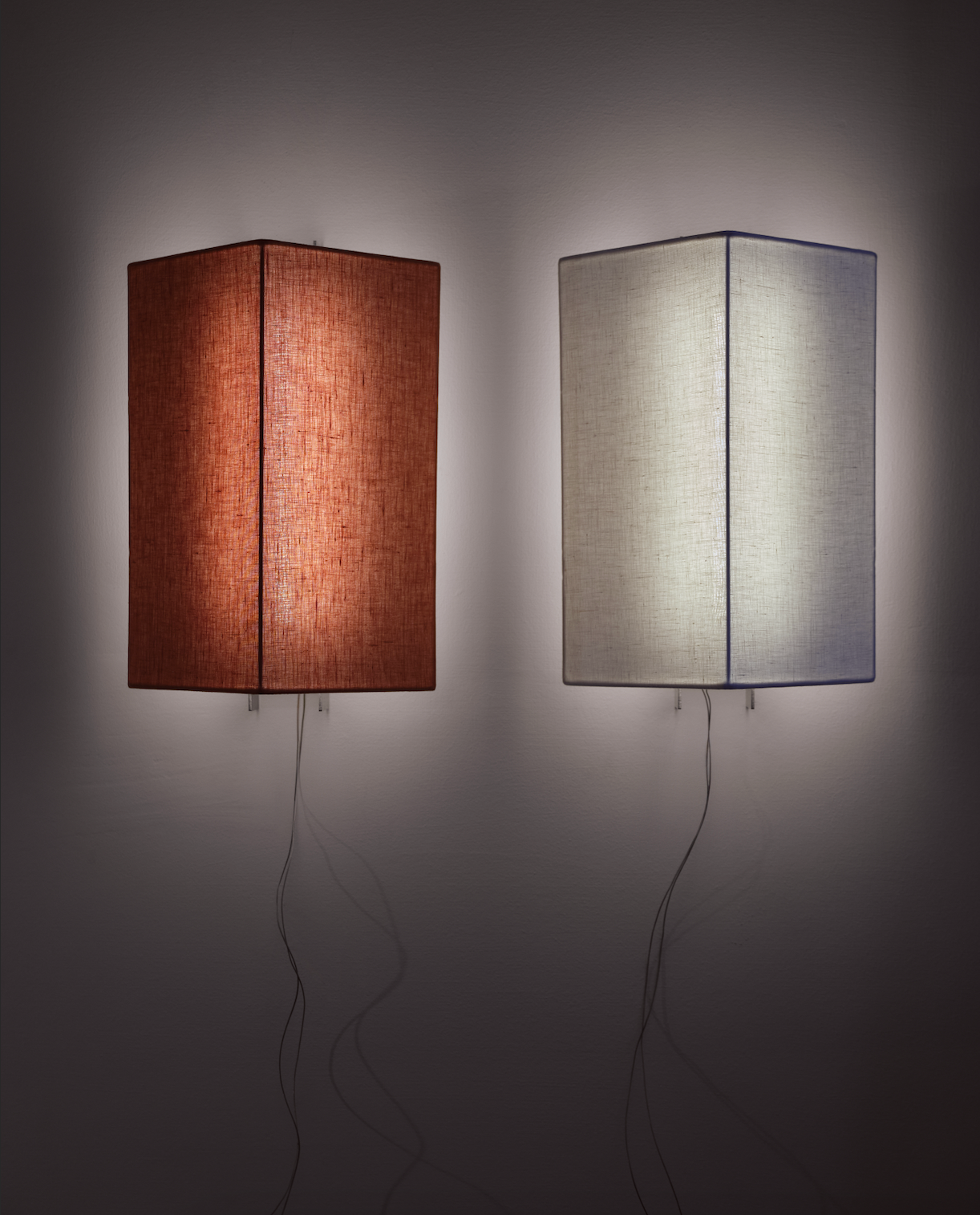 Telles des cabanes de lumière, ces lampes puisent leur inspiration dans l'élégance discrète des architectures éphémères. Deux supports en acier inoxydable soutiennent une enveloppe de lin – déclinée en cinq formes – révélant ainsi la structure qui lui donne sa forme. Entre le tissu et la source lumineuse, un espace lumineux s'ouvre : doux, changeant, habité.