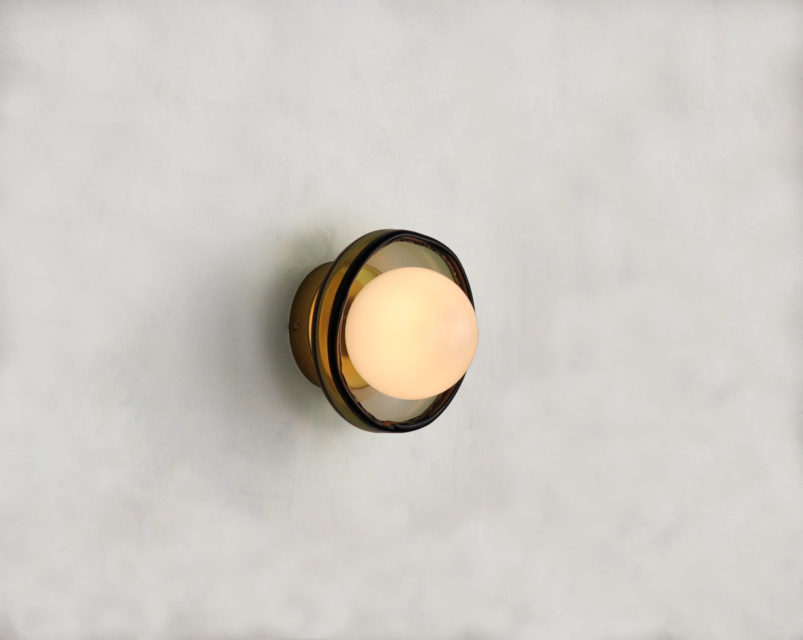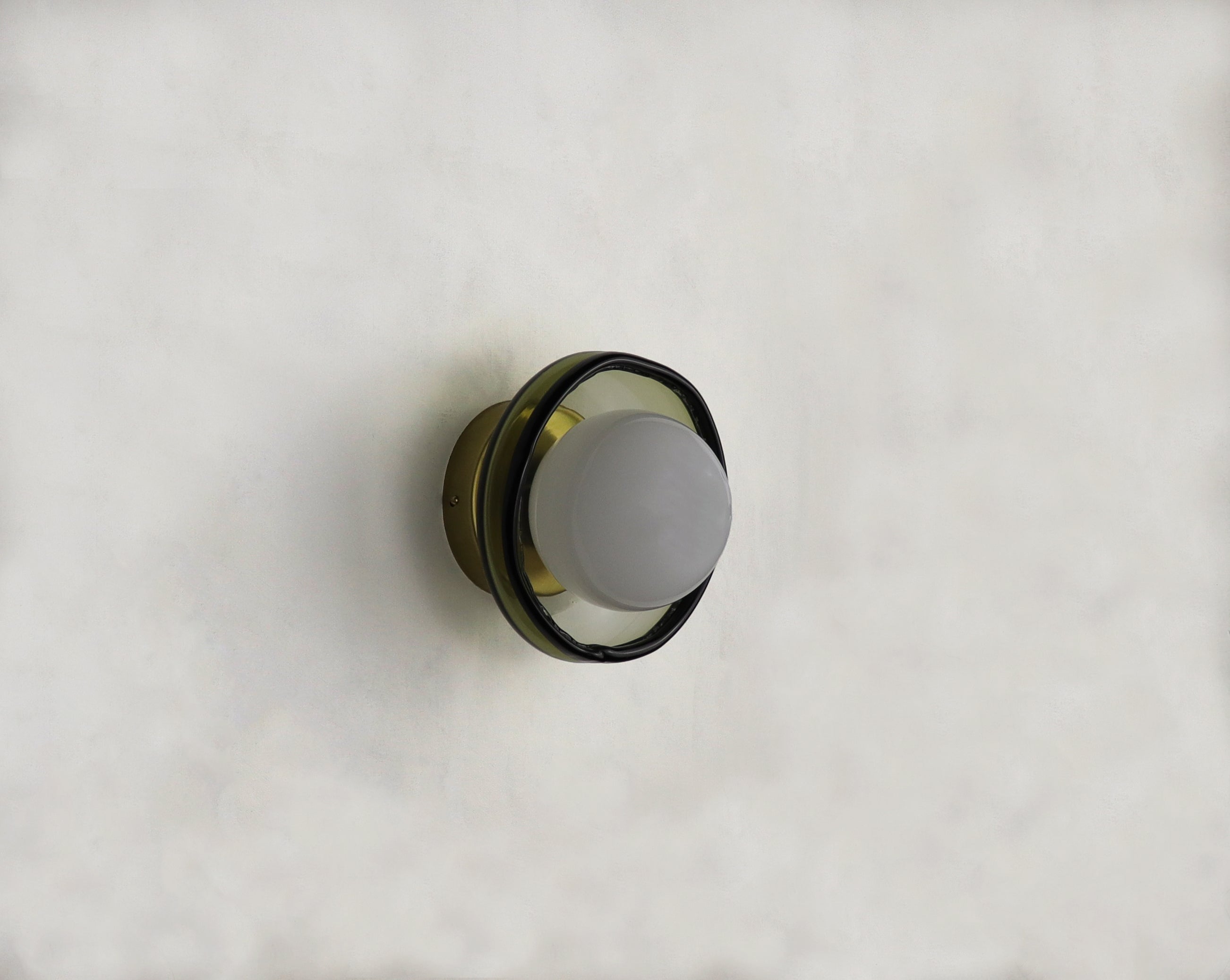 La petite applique murale 030.1 est fabriquée à partir de verre formé à la main en République Tchèque et monté sur une structure en laiton assemblée en Allemagne. Son design minimaliste lui confère une présence délicate mais expressive. Sa taille compacte permet d'être utiliser plusieurs fois sur un mur, créant ainsi des points lumineux superposés qui diffusent une lumière douce et atmosphérique.