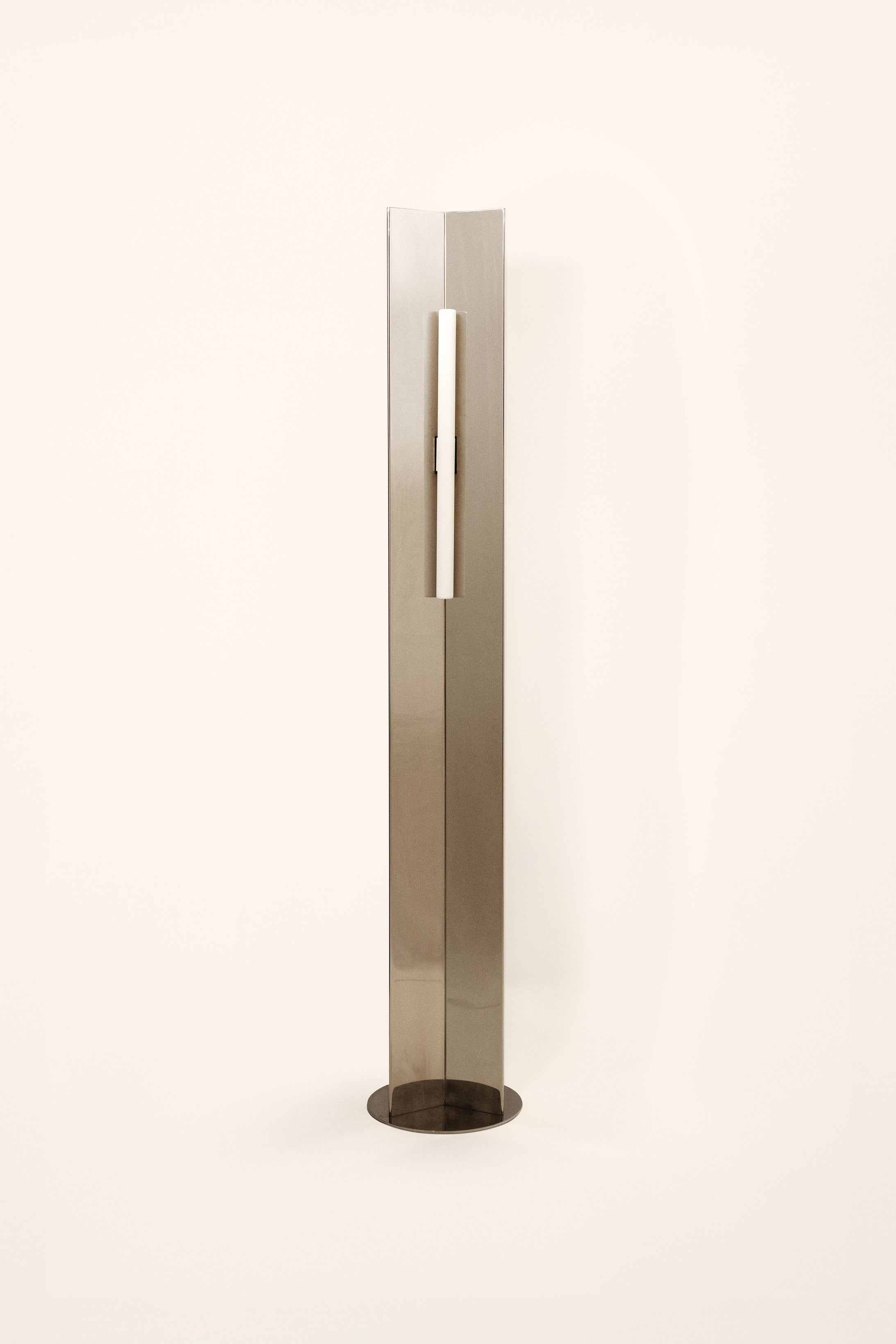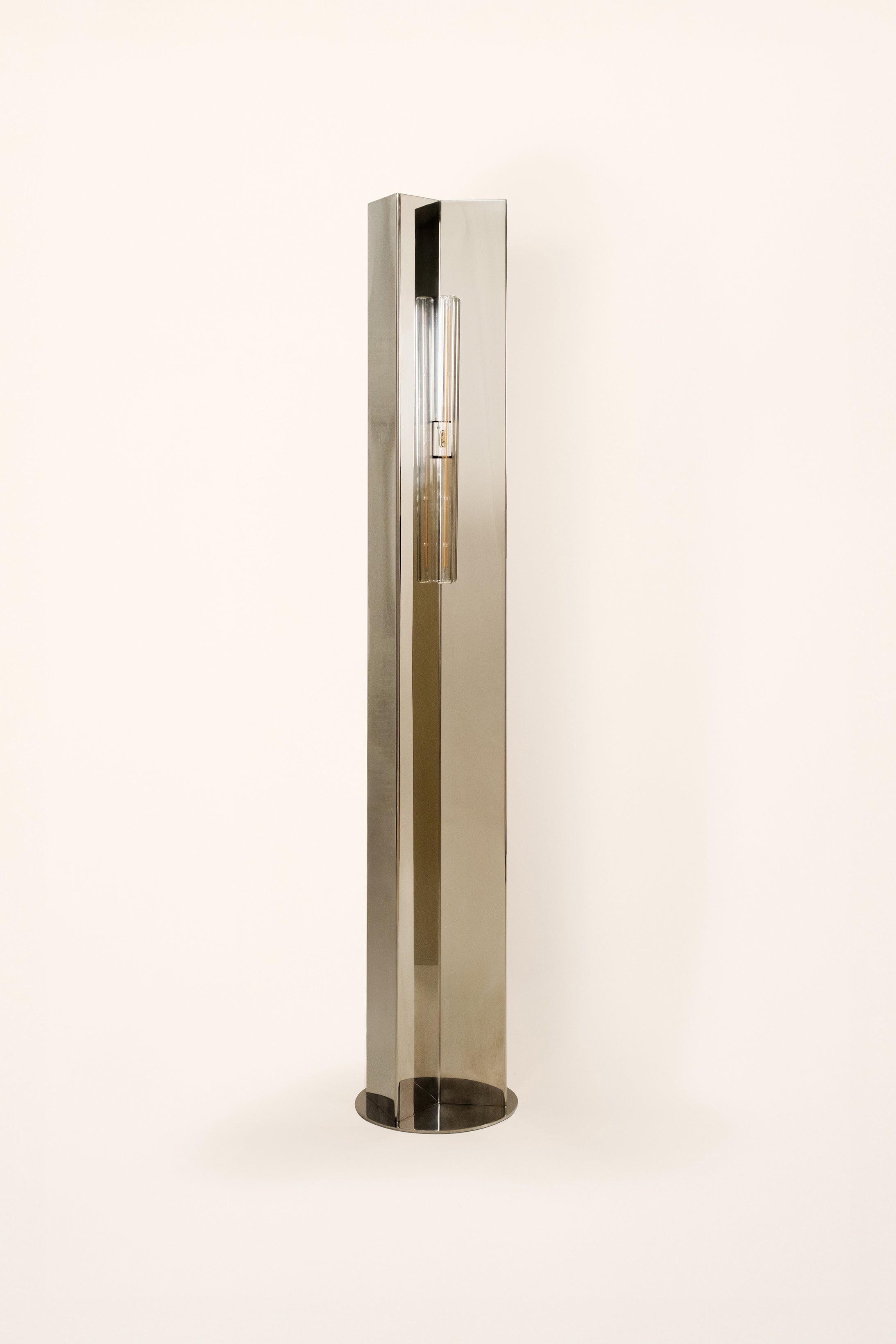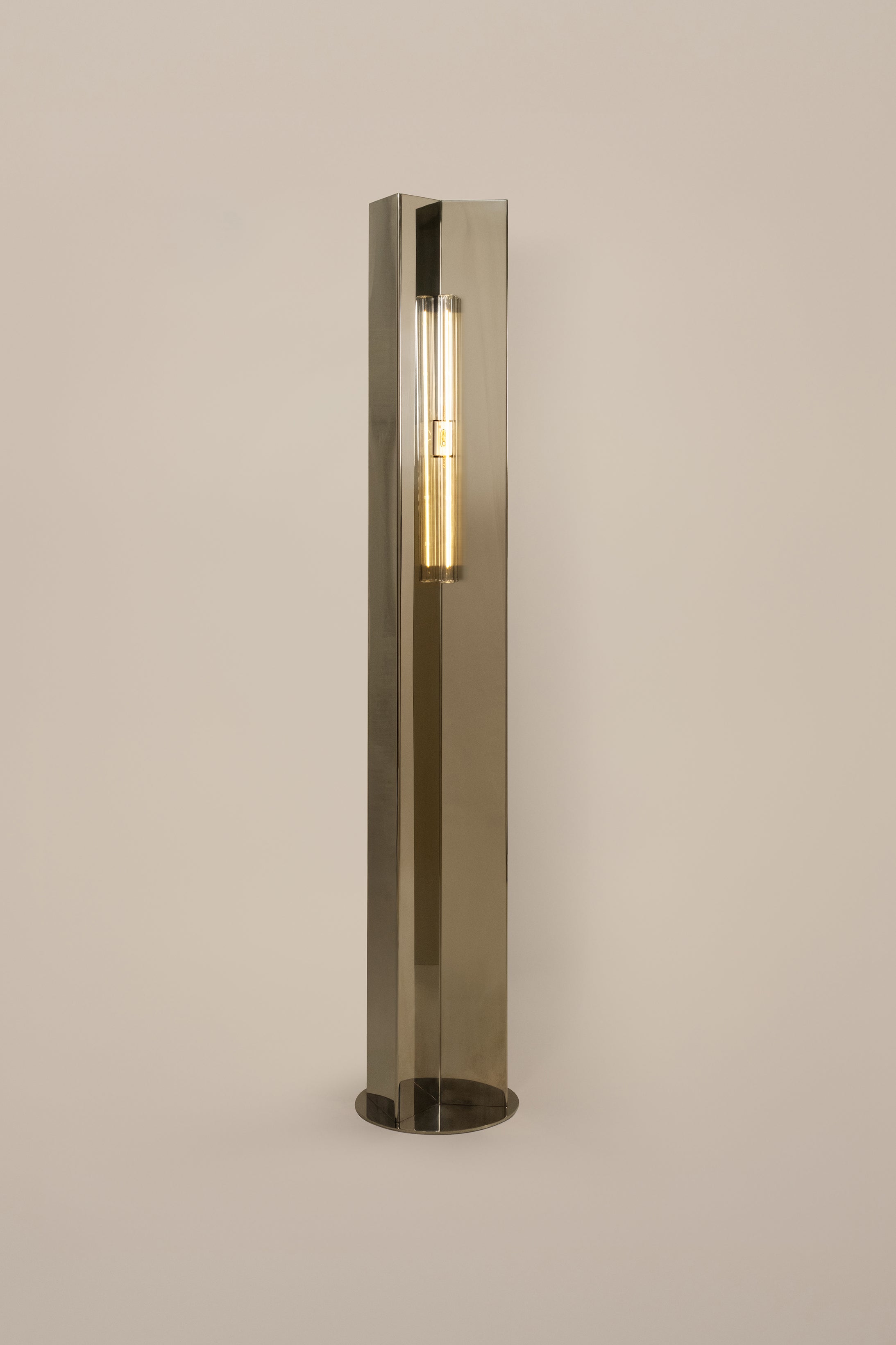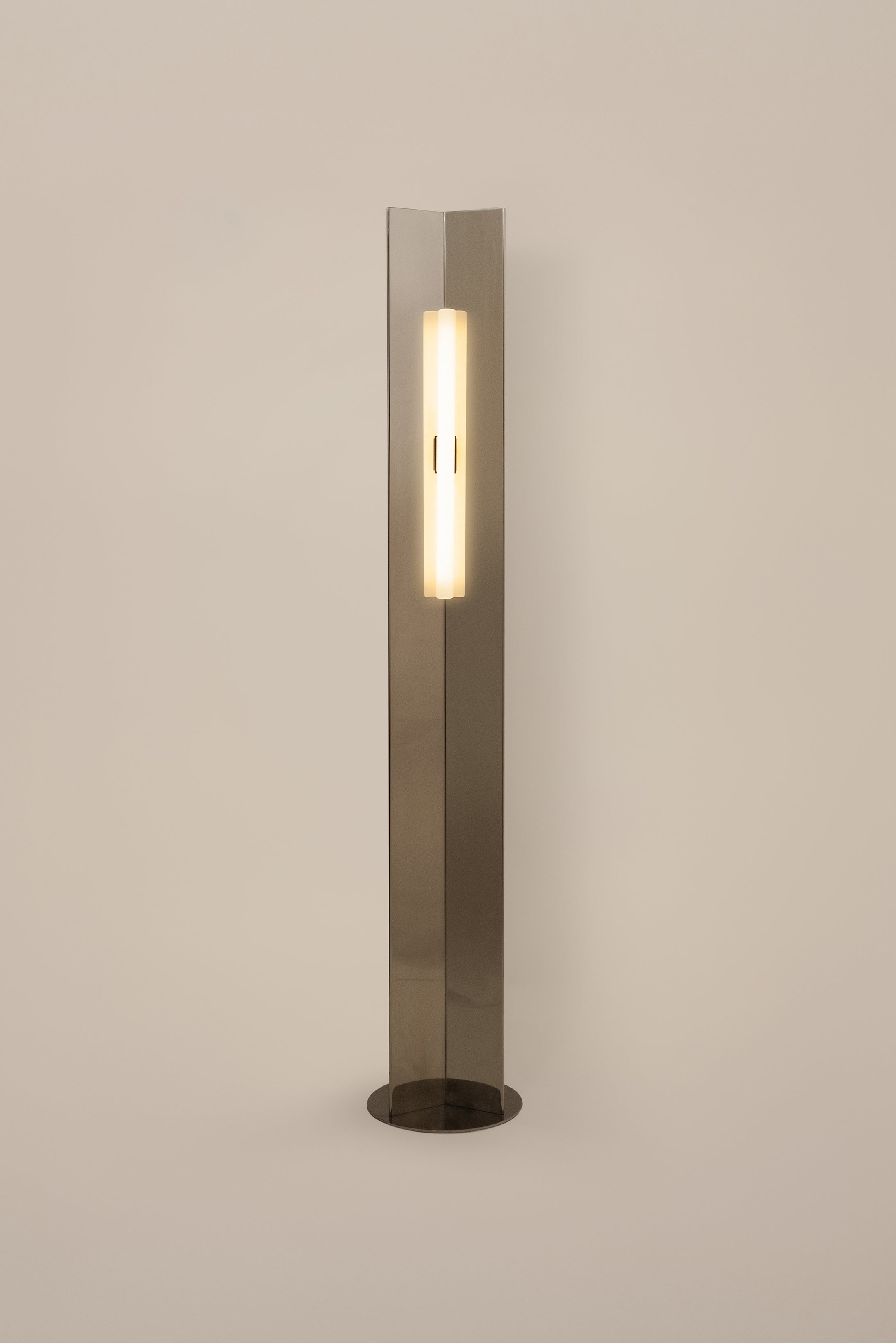With its bold, geometric silhouette, the Arrow Floor Lamp by French designer Violaine d’Harcourt makes a striking statement in any space. Standing at 158 cm, this minimalist piece is crafted from polished stainless steel, its reflective surface subtly interacting with the surrounding space, shifting with light and movement throughout the day. The Arrow Floor Lamp is available with or without a handcrafted paper diffuser, carefully made in d’Harcourt’s Lisbon-based atelier. The diffuser gently softens the light, creating a warm and atmospheric glow, while the bare metal version delivers a more direct, architectural illumination.