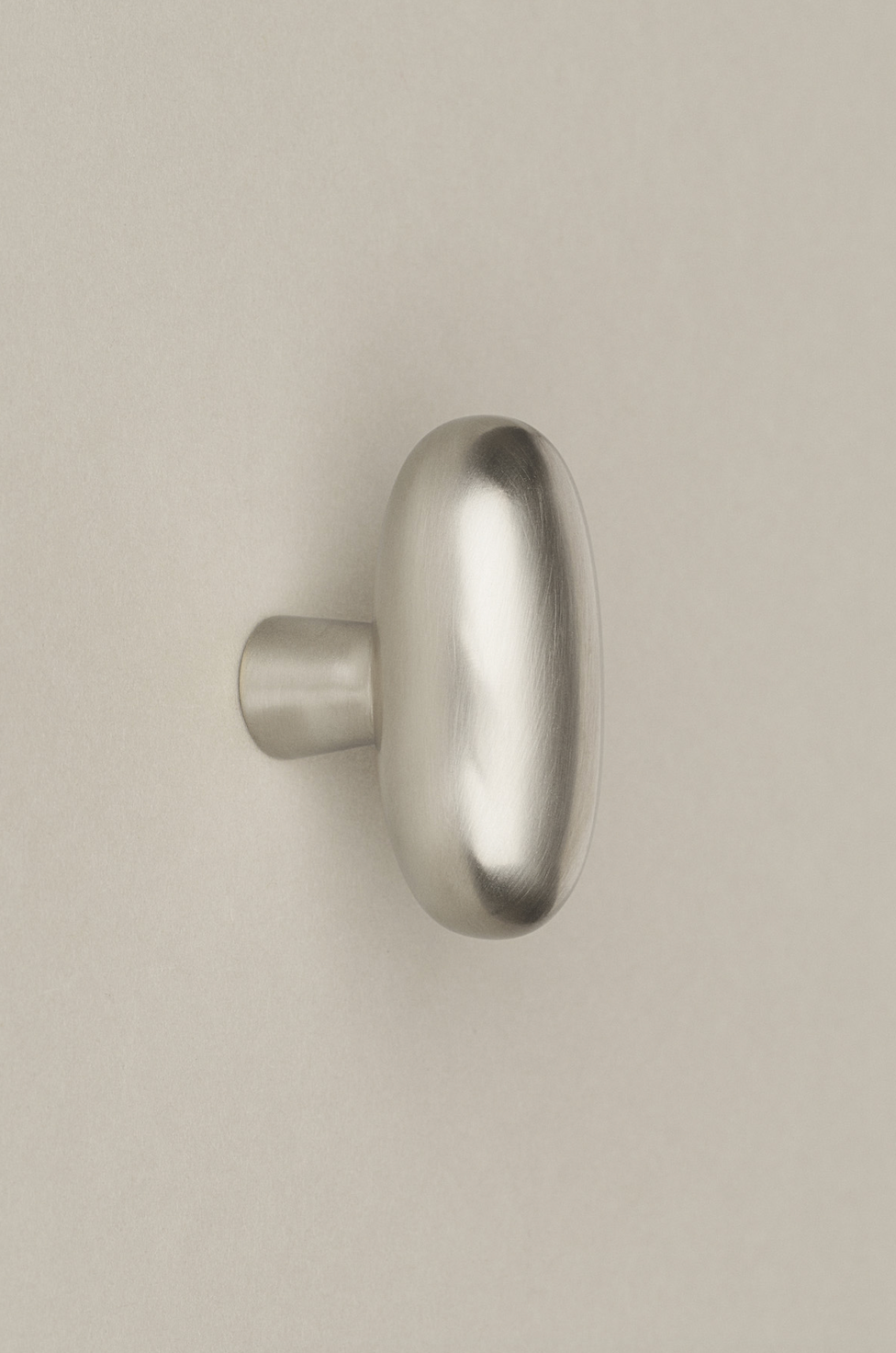 Introducing Blunt, an elegantly crafted furniture knob by the Swedish brand Spaces Within. With its harmoniously balanced oval shape and satin nickel finish, Blunt's classical yet refined form quietly enhances any space. Whether placed vertically on cabinets or horizontally on drawers, this versatile knob adds a touch of sculptural sophistication, and it pairs beautifully as a duo on long drawers for a cohesive look.