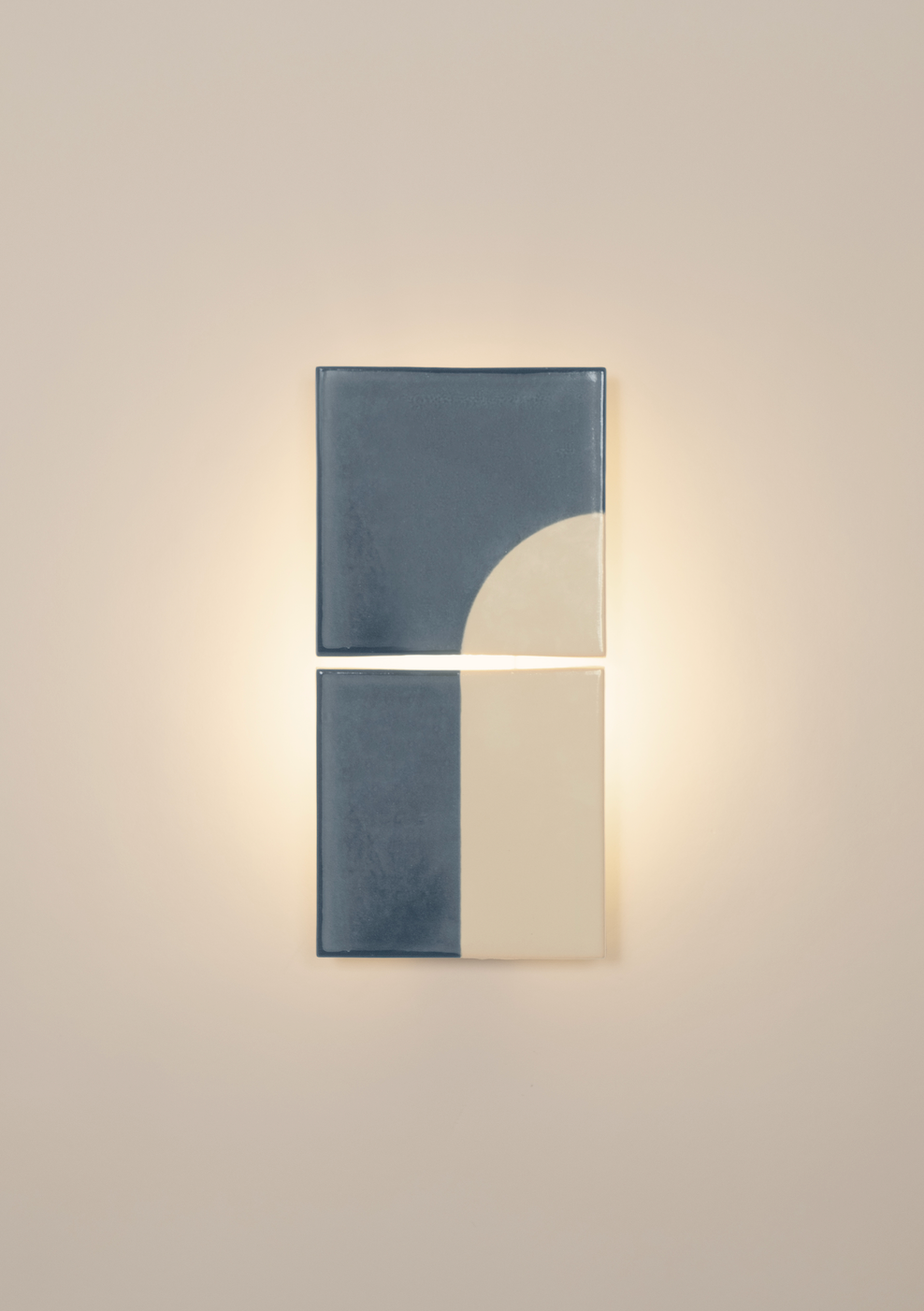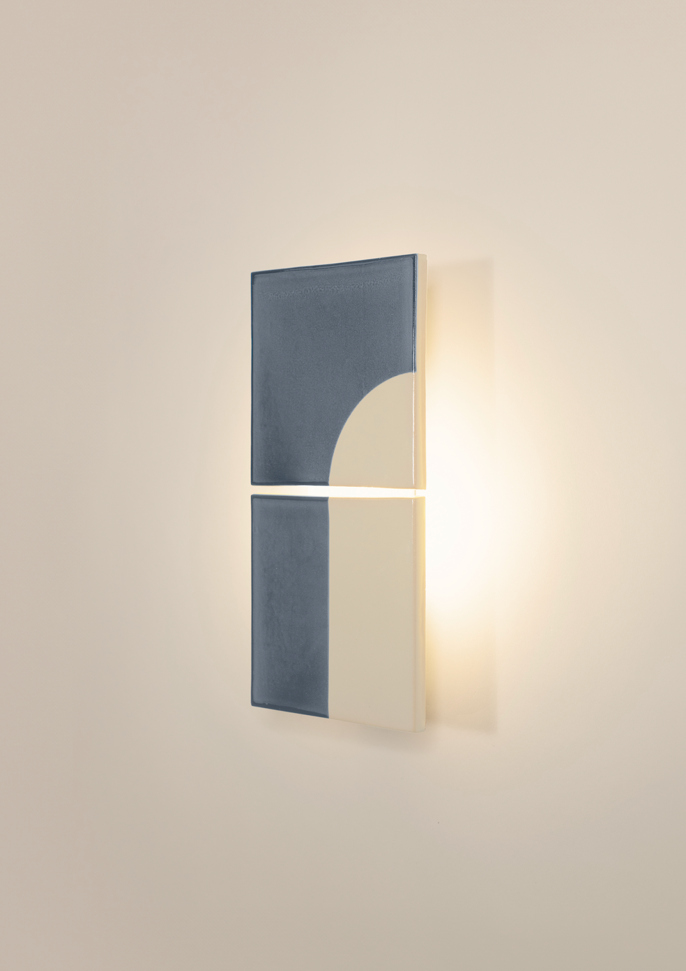 The Door wall light is part of the Tiles collection, a series of ceramic lights by Violaine d'Harcourt in collaboration with Dutch designer Marianne Smink. Handcrafted in a workshop north of Coimbra, Portugal, each tile is screen-printed in natural tones. The indirect lighting provides a soft, warm glow. Each Door wall light features slight colour variations and imperfections that highlight the beauty of craftsmanship.