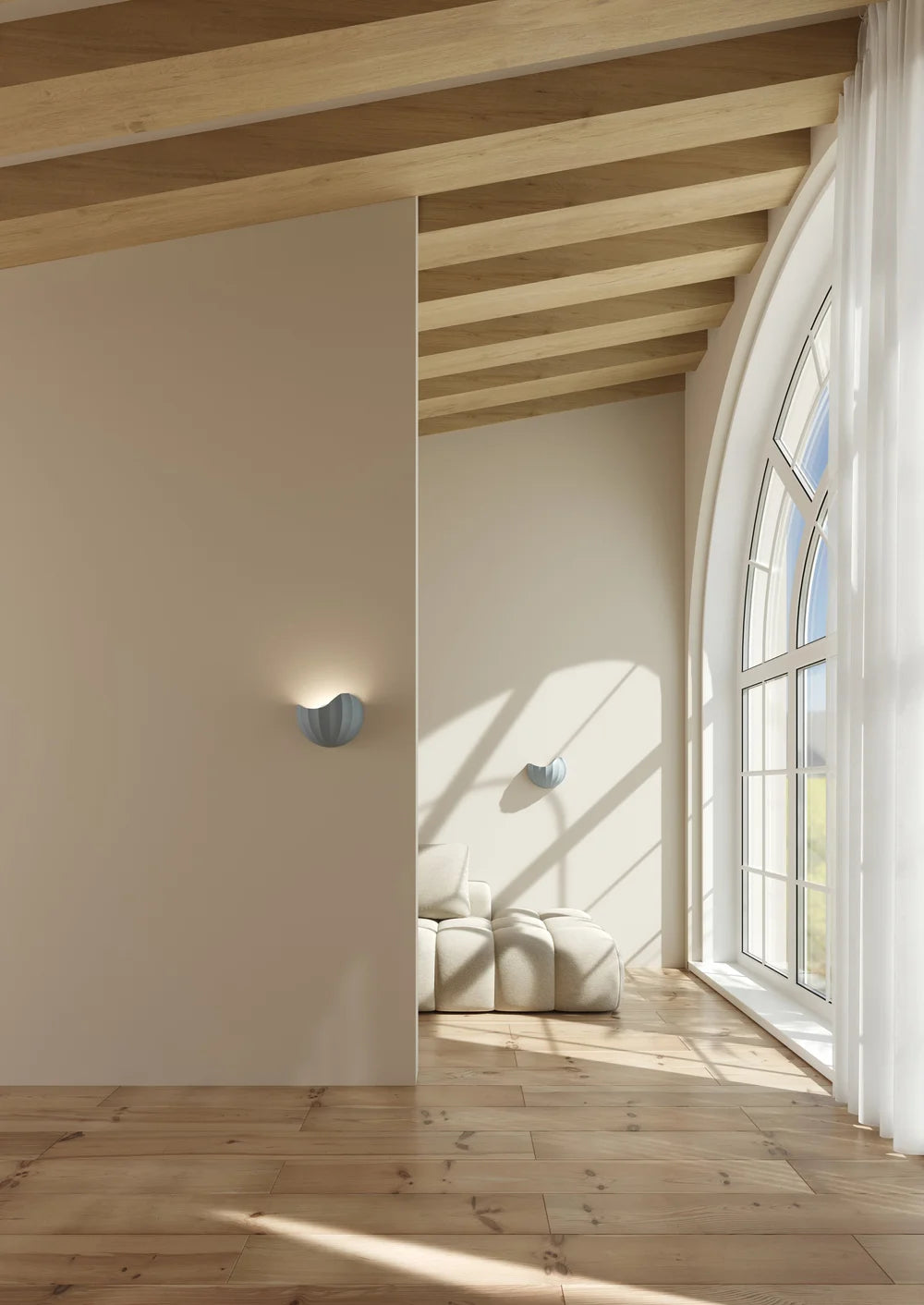 ONNA is a ceramic wall light handcrafted in Portugal. Its curvy and plated design celebrates organic lines and warm glow that will subtly illuminate any room of your house, particularly transitional spaces such as entrances, halls, and hallways.