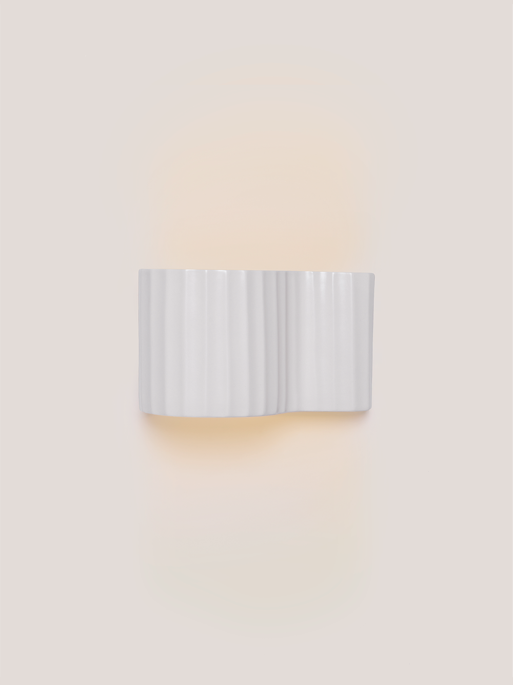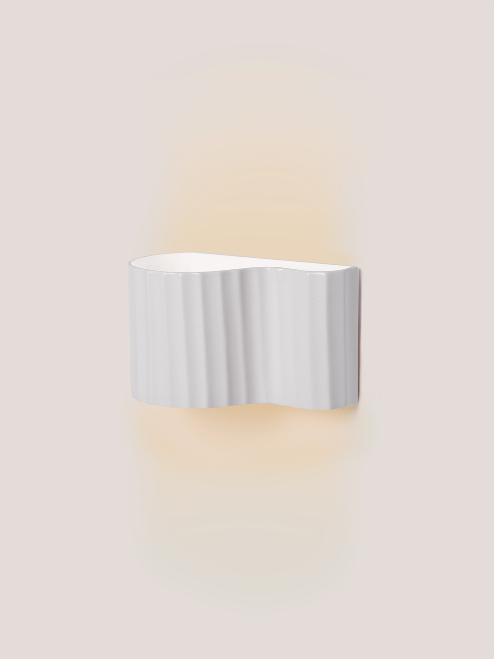 RIPPO is a ceramic wall light handcrafted in Portugal. Its subtle and fluted design celebrates flowing curvatures and casts a warm, inviting glow that will highlight any room of your house.