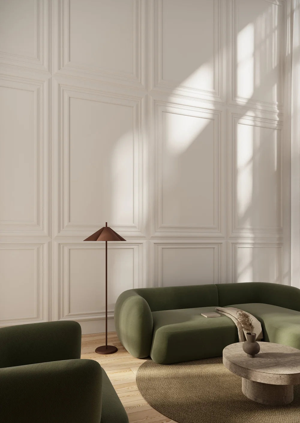 With an impactful presence, the SURI floor lamp brings a touch of elegance to any living space or bedroom. Its ceramic form combines flowing curves with sharp, rectilinear lines, transforming the traditional lampshade into a sculptural statement piece.
