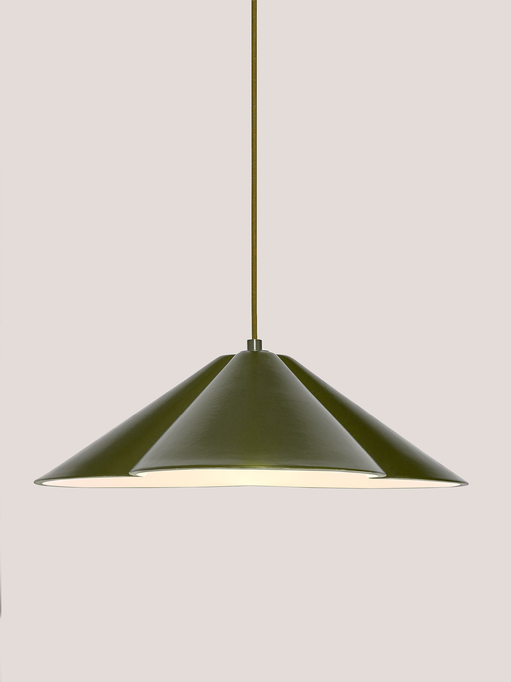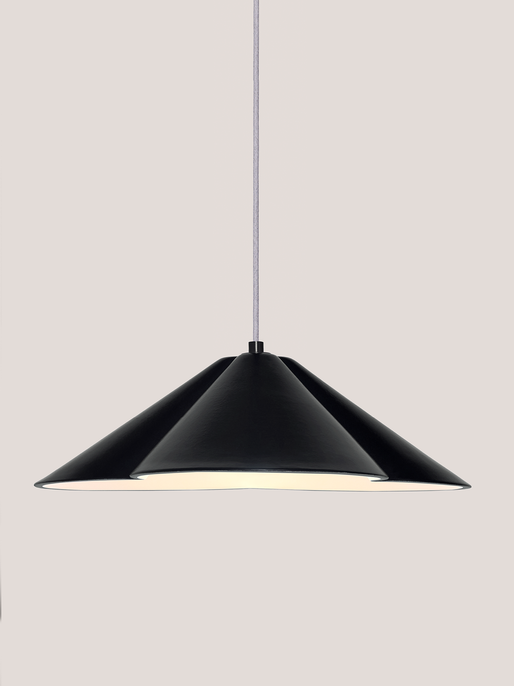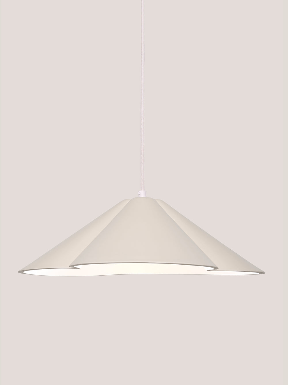 The SURI ceramic pendant light combines flowing curved lines with sharp rectilinear forms to create a quietly monumental presence. Its distinctive silhouette transforms the traditional ceramic lampshade into a sculptural statement piece, eye-catching, unique, and effortlessly timeless.