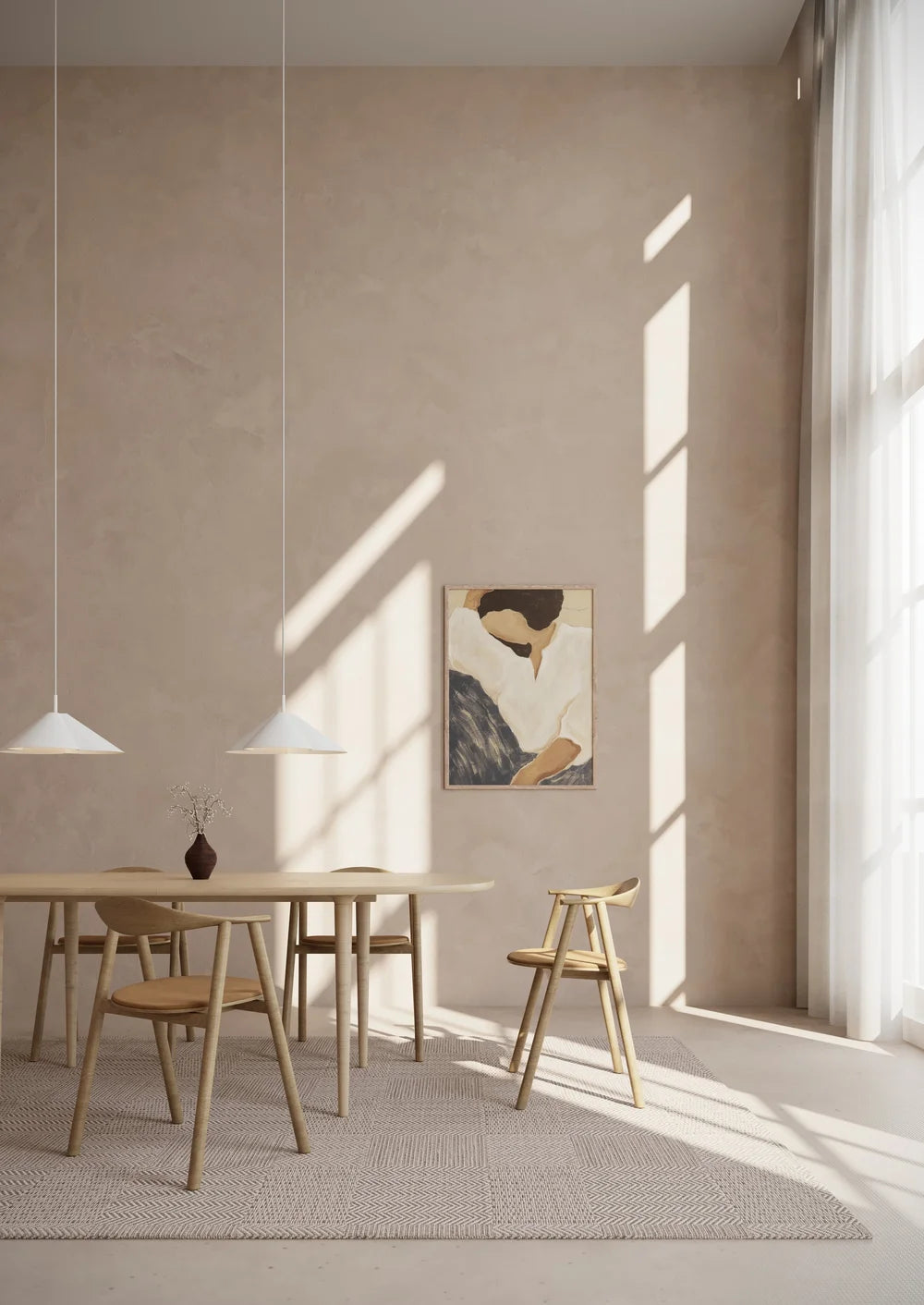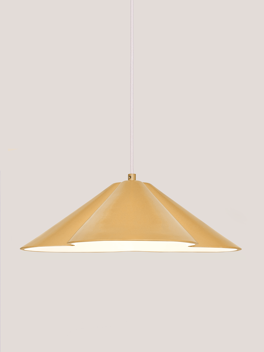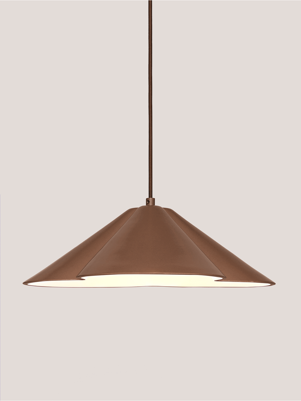 The SURI ceramic pendant light combines flowing curved lines with sharp rectilinear forms to create a quietly monumental presence. Its distinctive silhouette transforms the traditional ceramic lampshade into a sculptural statement piece, eye-catching, unique, and effortlessly timeless.